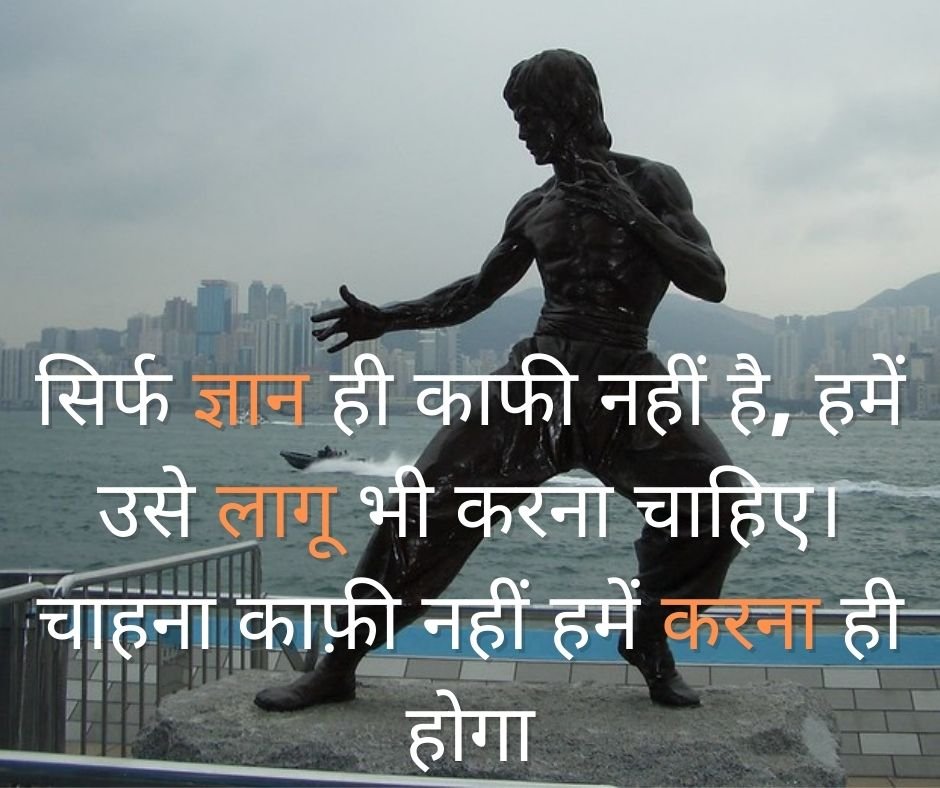 सिर्फ ज्ञान ही काफी नहीं है, हमें उसे लागू भी करना चाहिए। चाहना काफ़ी नहीं हमें करना ही होगा”!! ब्रूस ली